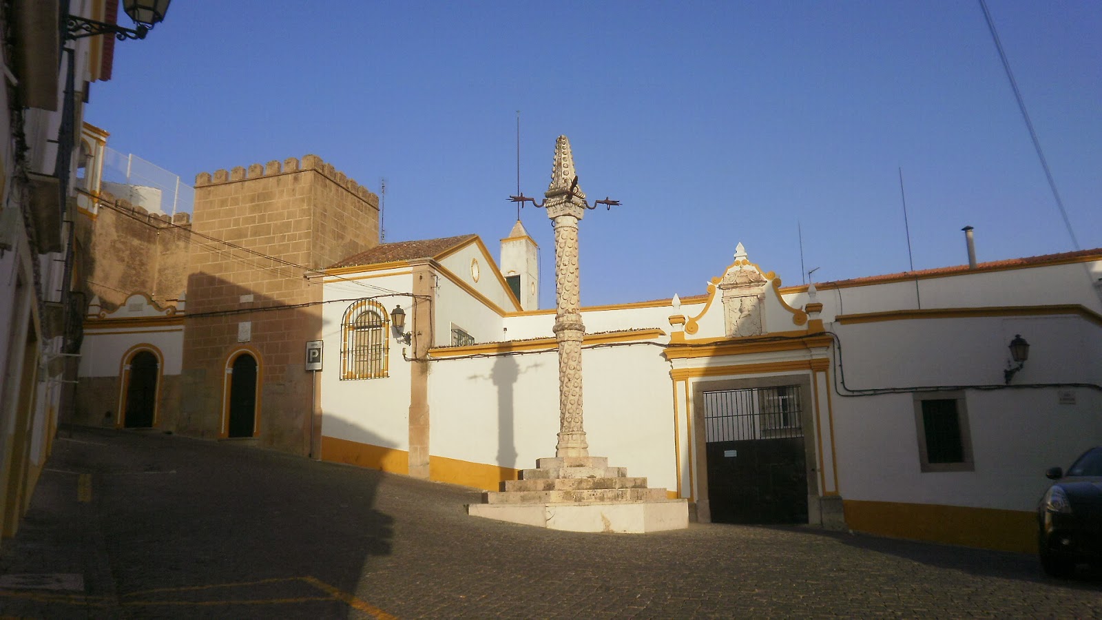 Monumento manuelino que representava o poder local. A sua coluna torsa, decorada com bolas, é um belo exemplo do manuelino existente em Elvas. Curioso o facto de os ferros ainda serem os originais do sec. XVI.