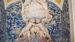 Encastrada nas traseiras do Santuário é uma bela peça marmorea enquadrada por azulejos oitocentistas.